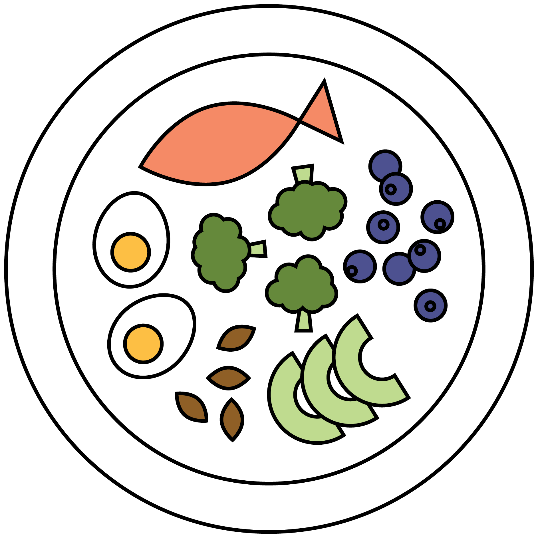 1 cup cooked spinach, 1 med orange, 1oz almonds, 1/2 cup blueberries, 1 large egg, 1 cup broccoli, 4 oz salmon, 1/2 cup quinoa, 1/2 cup fortified oats
