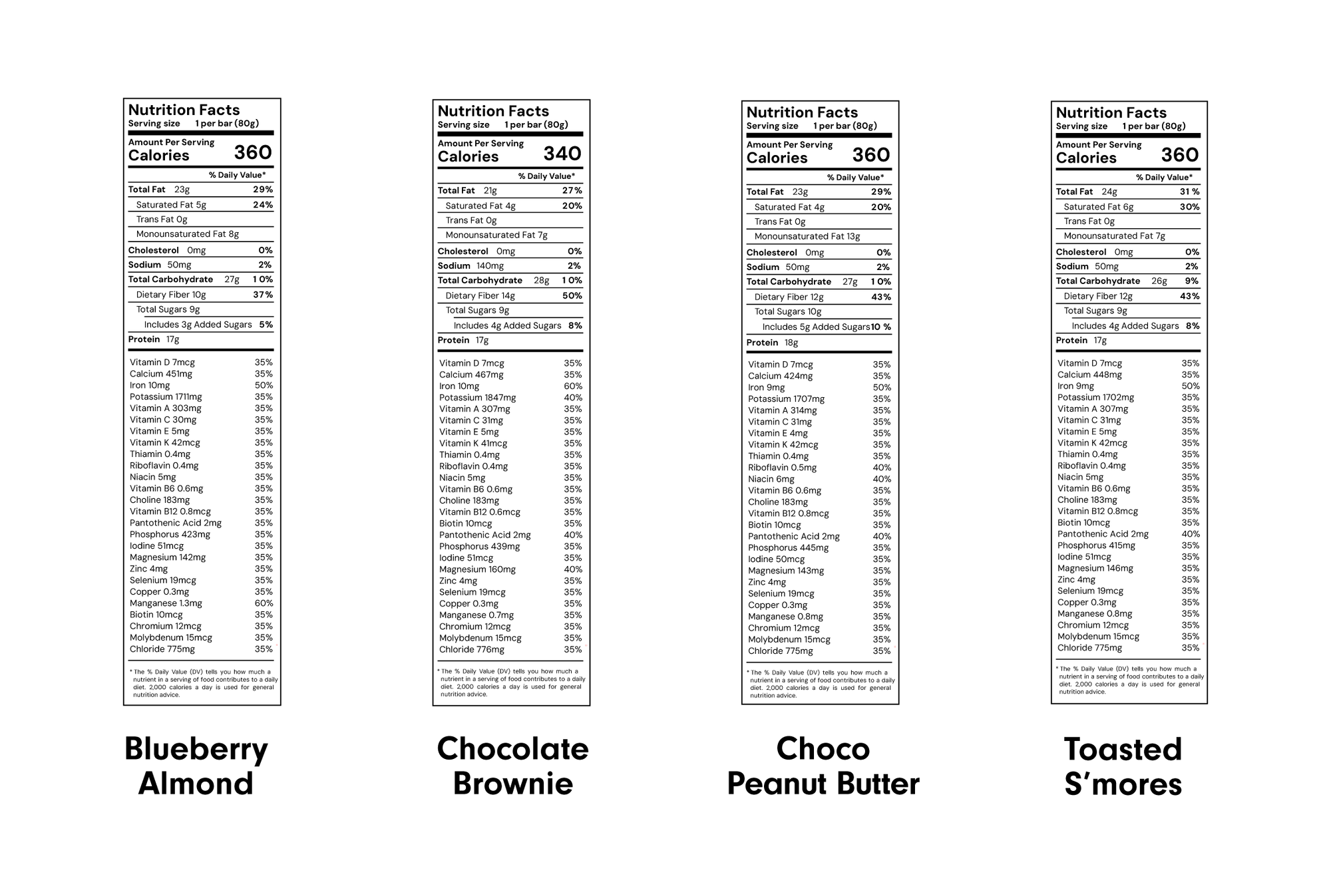 B BAR (PB): Tapioca Fiber, Dates, Chocolate Chips* (Cane Sugar*, Chocolate Liquor*, Cocoa Butter*, Vanilla Powder*), ABC Protein Blend†, (Marine Collagen Peptides*, Fava Bean Protein, Brown Rice Protein*), Peanuts, Cocoa Butter*, Honey*, Natural Flavors, Flax Meal, Vegetable Glycerin, Sunflower Lecithin, Lions Mane*. ABC Proprietary Micronutrient Blend†(Vitamin C, Vitamin E, Niacin, Vitamin A, Vitamin D3, Pantothenic acid, Vitamin B6, Vitamin B1, Vitamin B2, Biotin, Vitamin K1, Folic acid, Vitamin B12, Potassium chloride, Calcium carbonate, Monopotassium phosphate, Magnesium oxide, Zinc sulfate, Potassium iodine, Copper gluconate, Manganese sulfate, Sodium selenite, Sodium molybdate, Chromium chloride, non-hydrogenated Sunflower oil*)